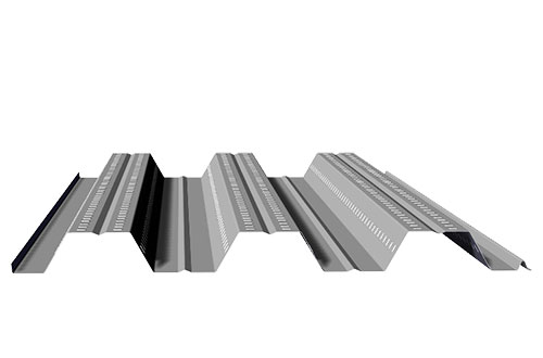 三、安裝壓型鋼板,樓承板前,應在梁上標出壓型鋼板線鋪放的位置線。鋪放壓型鋼板同時,相鄰兩排壓型鋼板端頭的波形槽口應對準。板吊裝就位后,先從鋼梁已彈出的起鋪線開始,沿鋪設方向單塊就位,到控制線后應適當調整板縫。