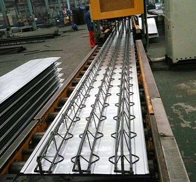 優點:實現了機械化生產,有利于鋼筋排列間距均勻、混凝土保護層厚度一致,提高了樓板的施工質量。裝配式鋼筋桁架樓承板可顯著減少現場鋼筋綁扎工程量,加快施工進度,增加施工安全,實現文明施工。裝配式模板和連接件拆裝方便,可多次重復利用,節約鋼材,符合國家的要求。鋼構自主研發的產品配套自動化生產設備,大大提高了勞動生產率,有效降低了產品成本,并編制了產品生產企業標準、設計手冊和節點構造圖集以及施工手冊。該產品通過浙江大學土木工程測試中心檢測,并經過多項工程應用,各項性能可以滿足現澆鋼筋混凝土樓板承載力和變形的要求。